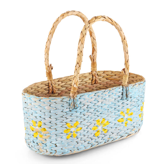 Kauna Grass Floral Hamper Basket For Multipurpose (Blue & Yellow)